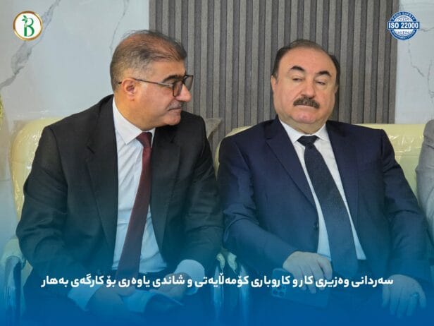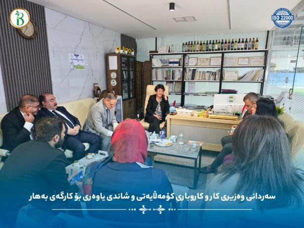 لە دیدارێکدا کە هەستی زۆری لای ئێمە دروست کرد بەوەی حکومەتی ھەرێمی کوردستان و وەزارەتی کار گرنگی دەدەن بە کارگە و پرۆژە کشتوکاڵی و خۆراکییەکان ، بەڕێز کوێستان محمد و سەرجەم ئەو بەڕێزانەی لەگەڵی بوون لە بەشێکی لە فەرمانگەکانی سەر بە وەزارەتیان لە هەولێر و سلێمانی ، جەختیان کردەوە لە پاڵپشتی حکوومەت لە پرۆژە بچووک و مامناوەندەکان بە پێدانی قەرزی درێژخایەن بێ ئەوەی سوودی بچێتە سەر و بێ وەرگرتنی کەفیل، کە ئەمەش متمانەی خاوەن کارەکان بە حکومەت و کەرتی بانکی زیاتر دەکات.![]()